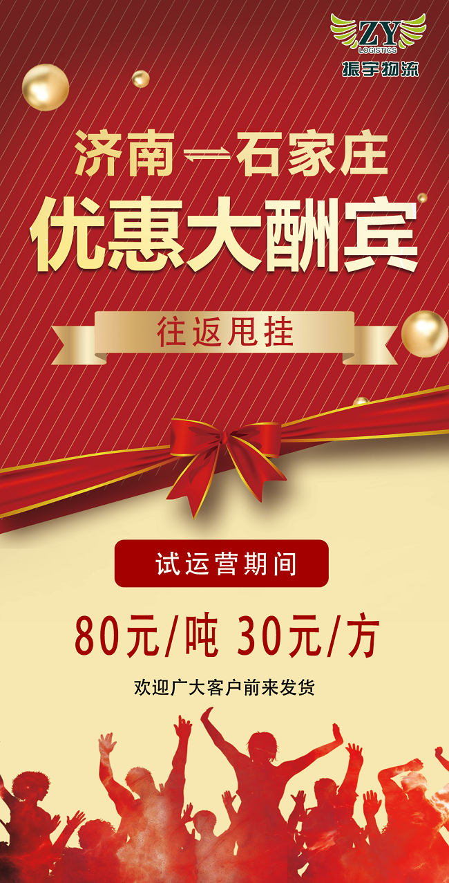熱烈祝賀振宇物流9.13號開通濟南到石家莊專線!往返甩掛,優(yōu)惠多多!