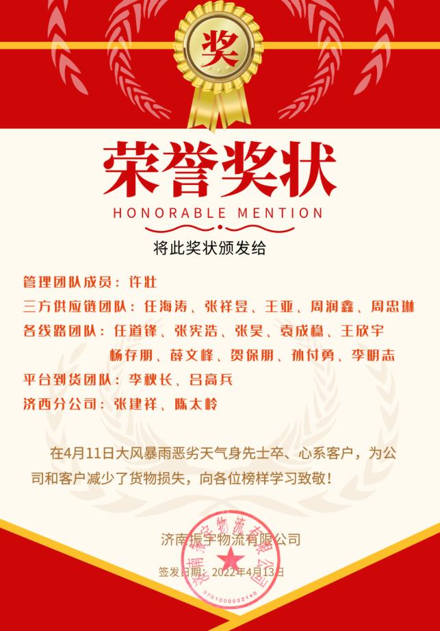 正是因為大家的努力,讓我們在面對這場突如其來的暴雨時,沒有慌亂自己的步伐,也是大家的付出,在這場暴風雨的戰(zhàn)斗中,我們將損失降到了最低,致敬雨夜中的振宇人。同時,這次突發(fā)事件,也給我們敲響了警鐘,希望各位同事在遇到惡劣天氣或其他突發(fā)狀況前能更好的籌劃和加固,防患于未然,繼續(xù)展現(xiàn)振宇人獨特的振宇魂。