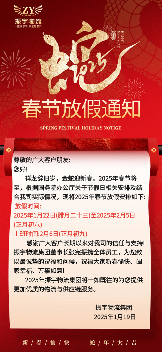 振宇物流集團丨2025年春節(jié)放假通知