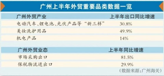 今年上半年,廣州外貿(mào)交出歷史性答卷——進(jìn)出口總額6050.5億元,同比(下同)增長15.5%,對全國、廣東外貿(mào)增長貢獻(xiàn)率分別達(dá)13.1%和46.7%;出口總額3969.1億元,激增25.2%;在連續(xù)13個月增長的曲線中,廣州外貿(mào)規(guī)模已經(jīng)連續(xù)兩個季度保持10%以上的增長,二季度出口更是創(chuàng)下季度歷史最高值。