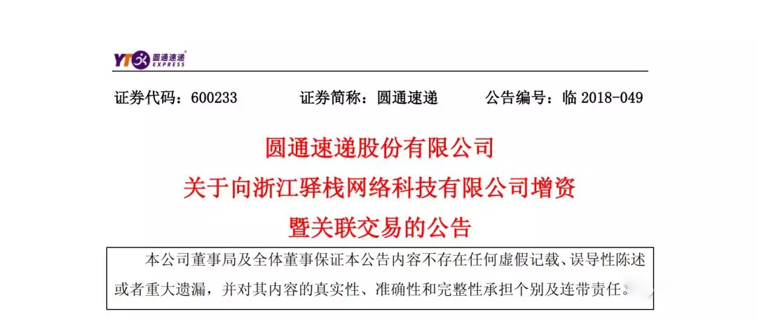 物流指聞最新獲悉,圓通速遞發(fā)布公告稱為提升公司末端派送服務(wù)時(shí)效,拓展多元化派送渠道,落實(shí)終端戰(zhàn)略布局,公司與圓澤投資、菜鳥供應(yīng)鏈、中通吉網(wǎng)絡(luò)、福杉投資、申通投資、百世物流科技及云鋒麒泰于5月29日在杭州共同簽署《關(guān)于浙江驛棧網(wǎng)絡(luò)科技有限公司之增資協(xié)議》。