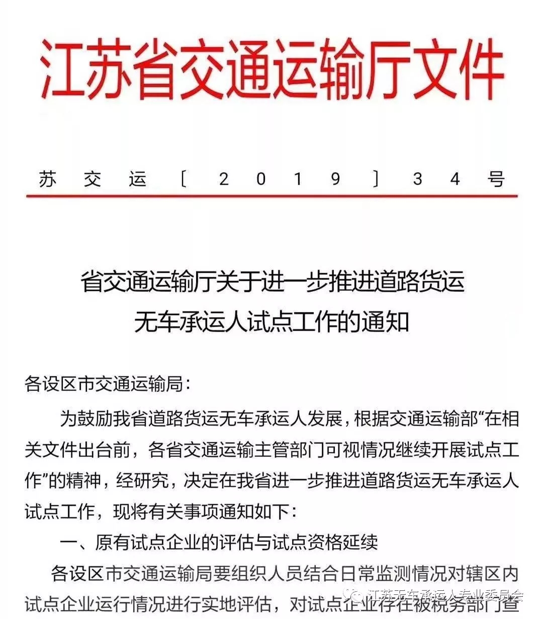 濟(jì)南物流公司:重磅!關(guān)于無(wú)車承運(yùn)試點(diǎn) 江蘇省交通廳發(fā)文